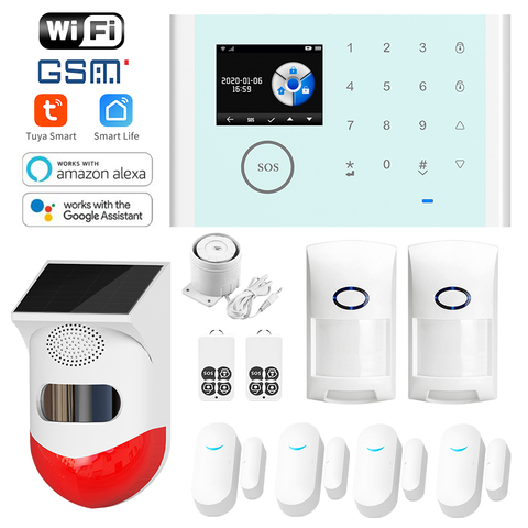 Tuya WiFi Plastic Sound Alarm PIR Motion Sensor Waterproof Solar Powered Security System for Home Outdoor with Siren